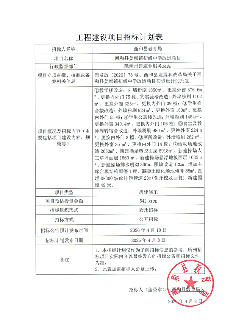 西和姜席初級中學(xué)招標(biāo)計(jì)劃表.pdf