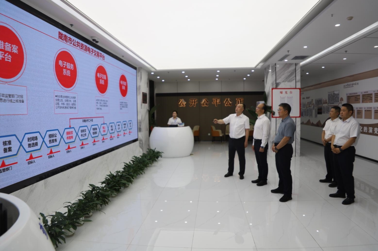 在調研過程中,李榮先后察看了交易服務大廳、網上開標直播大廳、專家抽取室、封閉評標區(qū)、多功能交易廳、黨建活動中心、行業(yè)監(jiān)管區(qū)、電子檔案管理室等運行情況,現(xiàn)場認真聽取了有關情況的匯報。對交易中心在場所設施保障、推行全流程電子化交易、黨建與業(yè)務融合發(fā)展、營造良好營商環(huán)境等方面工作給予了充分肯定。